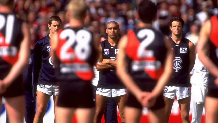 In 2001, the AFL season opens with a blockbuster between recent premiers Essendon and North Melbourne. Both clubs boast multiple flags from the prior decade, fueling a fierce rivalry. Essendon’s lineup includes 16 players from their dominant 2000 grand final victory, as they unfurl their 16th premiership flag, matching Carlton’s record. Favorites for a 17th title after losing just six of 45 games, the Bombers embody peak contention alongside the Blues.