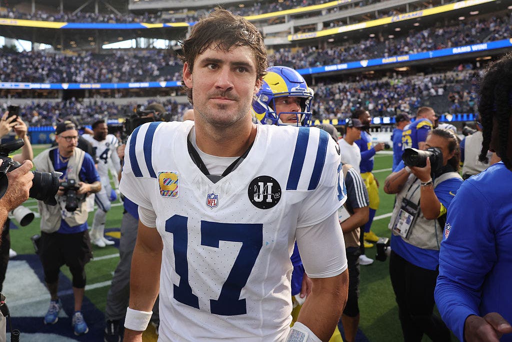 Daniel Jones’ win streak as Colts QB came to an end as he threw two interceptions against the Rams. (Photo by Sean M. Haffey/Getty Images)