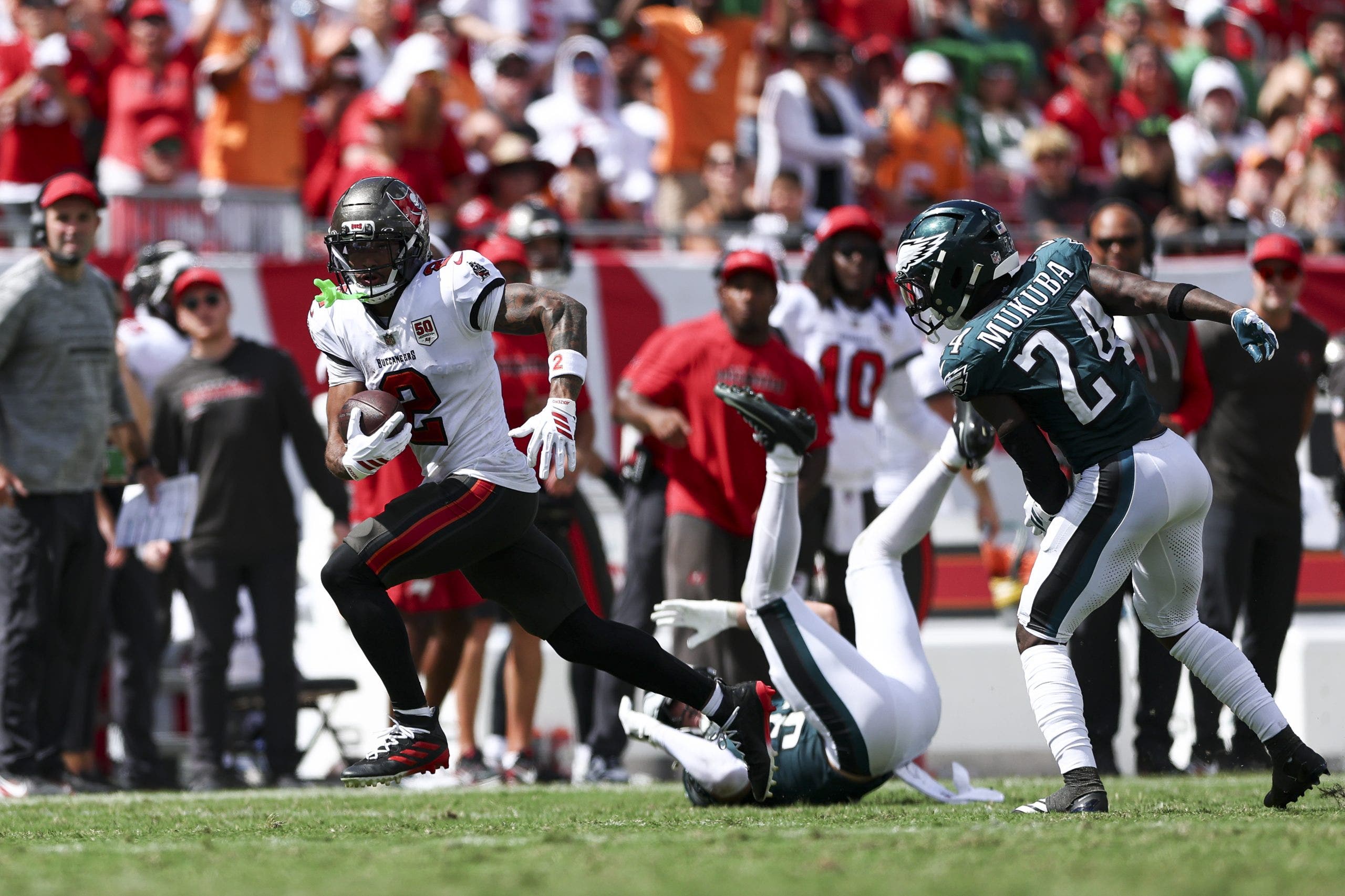 - Week 4 vs. Eagles: Egbuka has 101 yards, including a 77-yard touchdown as the Bucs tried to rally from a 24-3 deficit.