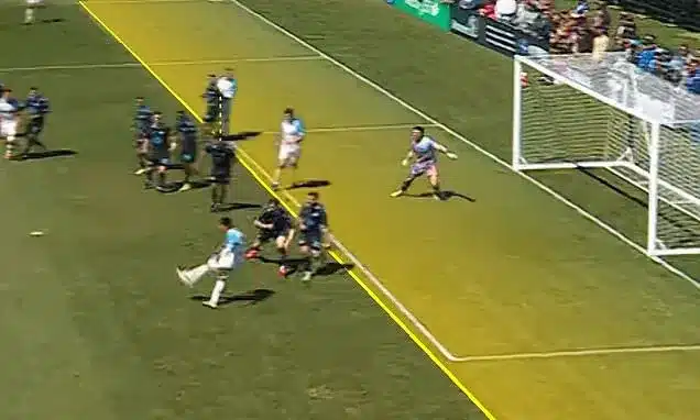 Alejandro Diaz capitalized on a rebound in the first half after the goalkeeper parried a shot. Under traditional offside interpretations, Diaz appeared ahead of the last defender. However, the trial rule deems an attacker onside if any part of their body aligns with the defender, leaving no visible gap or ‘daylight’ between them.