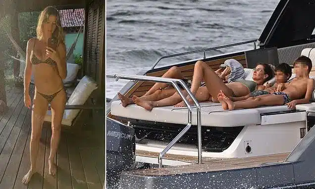 Gisele Bündchen, 45, showcased her post-baby figure in a pale green bikini during a relaxing boat day in Miami on Sunday. The mother of three lounged on the deck of her yacht, surrounded by loved ones, wearing sunglasses and securing her long, blonde-highlighted hair with a claw clip.