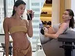 In the clip, Bieber executes dumbbell hip thrusts, balancing her body off the ground between two benches. She captioned the post as a ‘Saturday a** kick’ alongside Godso, who has a substantial Instagram following. The video features Don Toliver’s track ‘Call Back’ and shows Bieber in a light gray sports bra, form-fitting yoga pants, and white sneakers with black laces.