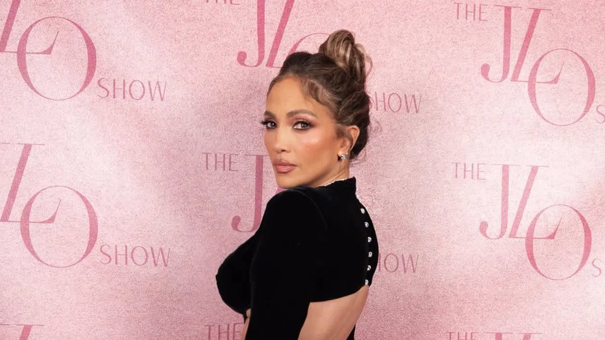 Jennifer Lopez wrapped up her Las Vegas residency with a memorable performance on March 28, dazzling audiences in a striking ensemble. She transitioned from a sparkling stage outfit to a sleek black velvet gown featuring a high neckline and long sleeves accented by feathers on the cuffs. The gown’s bold open back with a scooped design highlighted her toned midriff, complemented by elegant buttons along the upper back.