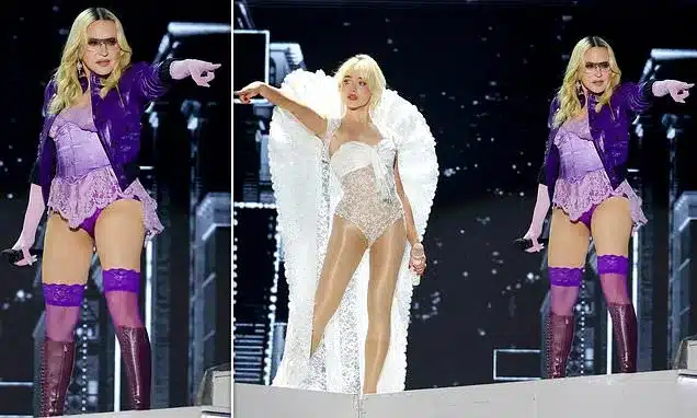 The pop icon, dressed in striking purple lingerie, joined the 26-year-old Espresso hitmaker onstage to perform snippets of her 1990 track Vogue and 1989 classic Like a Prayer, with prominent backing vocals. Emerging from beneath the stage toward the end of Carpenter’s set, Madonna extended the performance to a crowd-protruding platform.