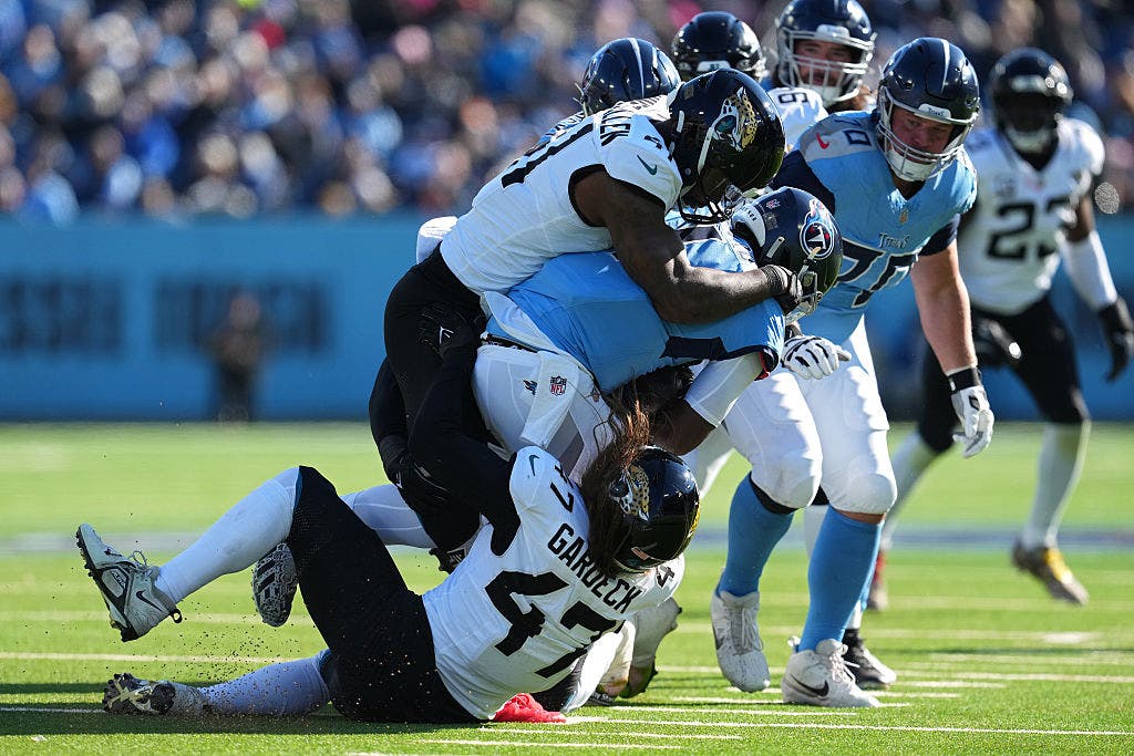 Ward was sacked three times against the Jaguars in Week 13, adding to his league-leading total. (Photo by Jeff Dean/Getty Images)
